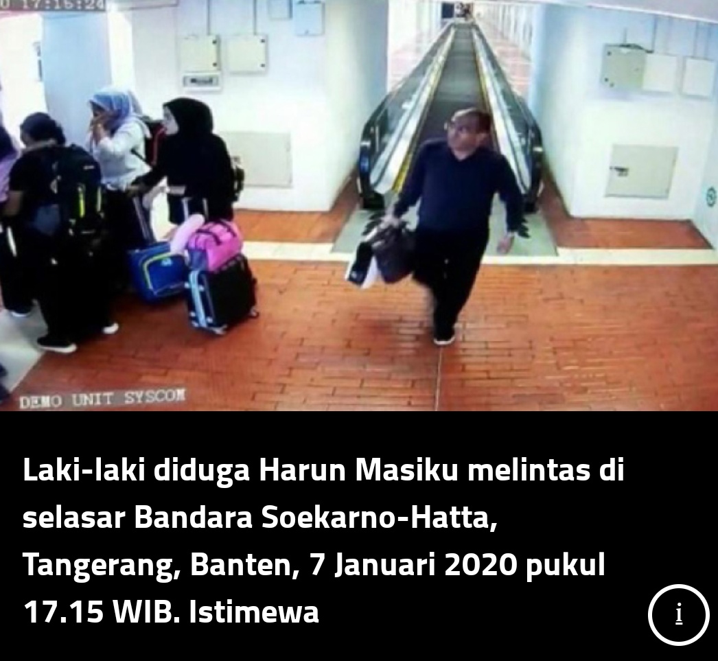 Seperti dikutip Majalah Tempo edisi 18 Januari 2020, “Harun di Pelupuk Mata Tak Nampak”, CCTV Bandara Soekarno-Hatta merekam detik-detik calon legislatif PDIP pada Pemilu 2019 ini tiba di tanah air pada 7 Januari 2020.