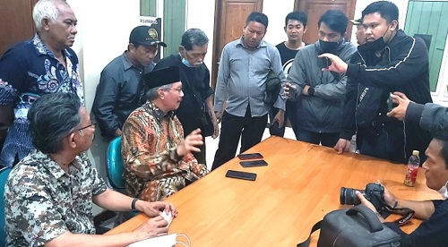 Choirul Anam (Cak Anam) memberikan keterangan pers seusai banser-ansor Surabaya membubarkan acara yang diadakannya