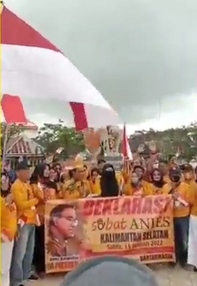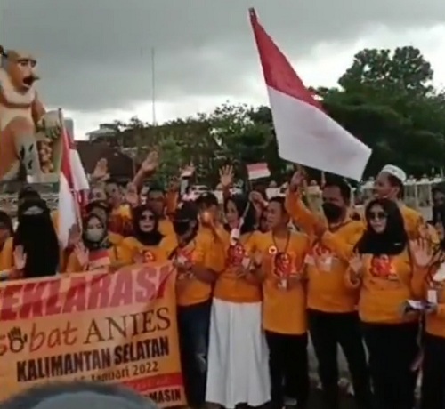 Mereka juga membentangkan spanduk deklarasi “Sobat Anies” Kalimantan Selatan.