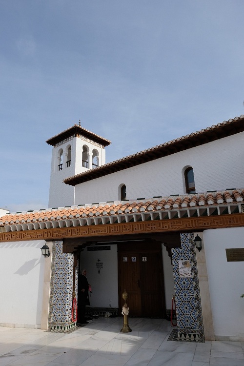 U: “Tidak mudah untuk mendapatkan tanah yang cukup luas. Tanah ini satu-satunya tanah yang Kami dapatkan. Kami beruntung karena lokasinya sangat strategis, di ketinggian yang dari halamannya Kita dapat melihat Alhambra secara leluasa. Dalam masalah perijinan, Kami tidak menemui hambatan yang berarti. Untuk melihat betapa strategisnya posisi Masjid ini, mari kita lihat dari atas menaranya”.