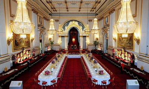 G: “Pak Dubes yang ditemani tiga pejabat teras KBRI akan menaiki sekitar enam puluh anak tangga, kemudian melewati tiga ruangan sebelum bertemu Raja: Pertama, ruangan yang paling besar dan bersejarah, dimana singgasana Raja berada, yang dulu digunakan oleh Raja untuk menerima tamu-tamunya, dan digunakan untuk mengurus negara sehari-hari. Di ruangan ini, Dubes akan diambil foto.