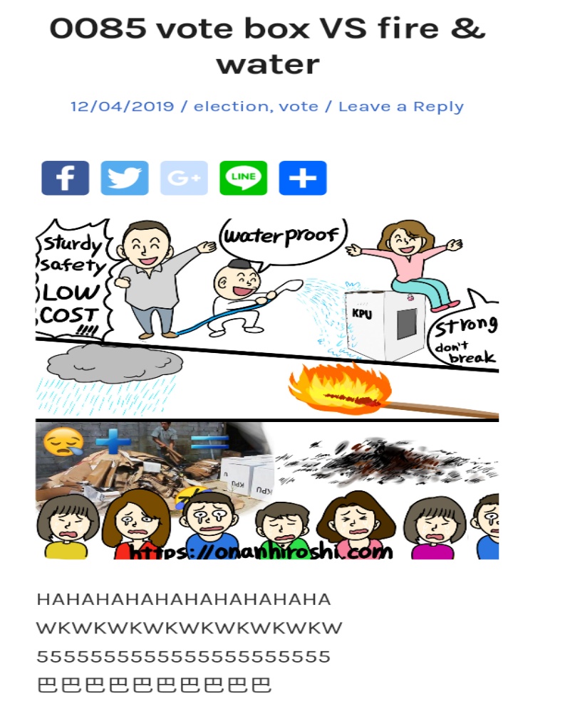 Kritik karikaturis Jepang Hiroshi Onan melaui karikatur yang dibuatnya rupanya cukup berhasil. Setidaknya di TPS luar negeri kotak karton KPU itu banyak yang diganti.