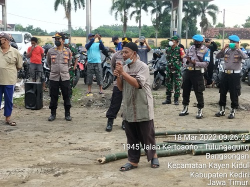 ZONASATUNEWS.COM, KEDIRI – Sekitar seratusan warga Dusun Gerdu Desa Bangsongan Kecamatan Kayen Kidul dan Dusun Tundan Desa Purwotengah Kecamatan Papar Kabupaten Kediri dengan didampingi Organisasi Massa Gerakan Rakyat Menuju Kediri Lebih Baik (GR-MKLB) menggelar aksi damai demonstrasi dan menutup paksa akses jalan masuk pabrik milik PT Merak Jaya Beton.
