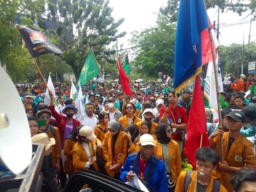 Aksi demo yang diikuti sekitar 2.000 mahasiswa itu menyebabkan lalu lintas kendaraan yang melintas melalui Jalan Adi Sucipto Solo di depan Gedung DPRD Solo ditutup.