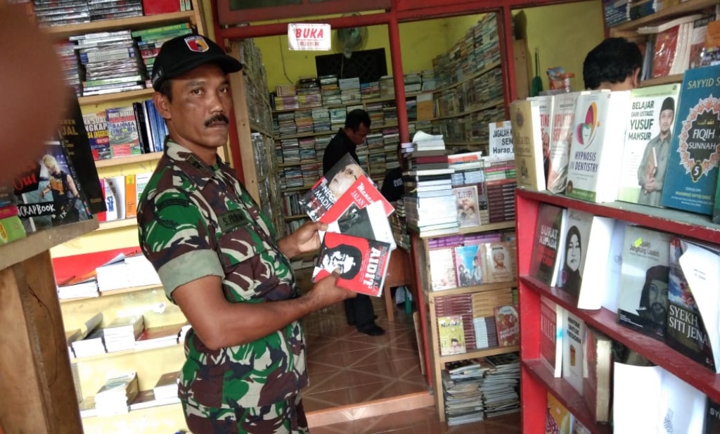 Kediri, Zonasatu News –Beredar di medsos anggota Babinsa Koramil Pare Kediri di bantu oleh Satuan Intel Kodim Kediri Jawa Timur Menggerebek Toko Buku Q Ageng di Jl.Brawijaya.No.67 Pare Kediri, dan menyita buku-buku yang disinyalir berisi propaganda PKI dan tokoh-tokoh PKI.