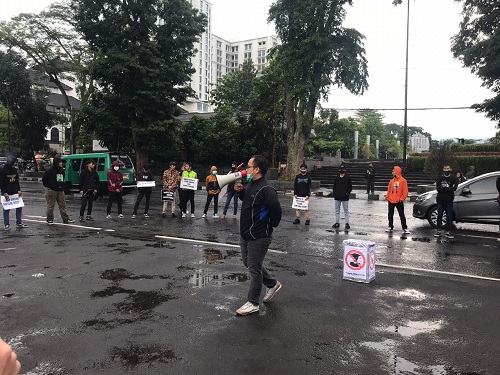 ZONASATUNEWS.COM, BANDUNG–Gerakan masyarakat sipil dari Barisan Aksi (BARAK) Pemuda dan Mahasiswa melakukan aksi lanjutan di depan Gedung Sate agar pelaksanaan Pemilihan Kepala Daerah Serentak 2020 di tengah pandemi ditunda (13/11).