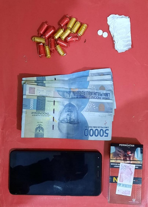 Dari hasil penangkapan tersangka ini, polisi berhasil mengamankan beberapa barang bukti diantaranya yakni 90 butir pil double L, Uang tunai sebesar Rp. 250.000, dan dua satu buah handphone milik tersangka.
