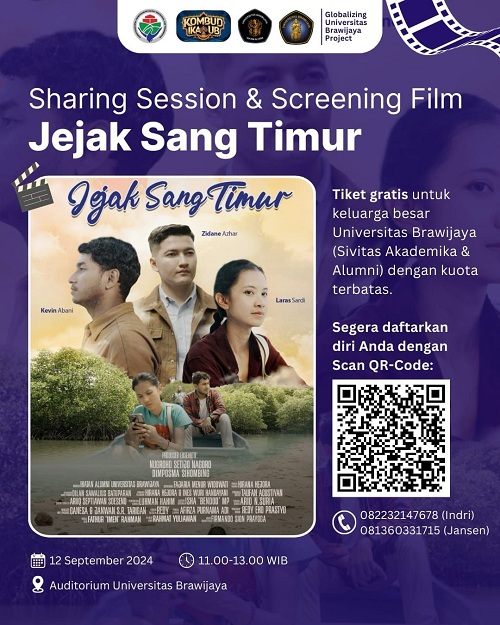 Film Jejak Sang Timur dibintangi Laras Sardi, Kevin Abani, dan Zidane Azhar. Produser dan penulis skenario, Kirana Kejora, alumnus FPIK UB 1989. Disutradarai Fajaria Menur Widowati, alumnus S2 FISIP UB 2019, dengan beberapa cast dan crew juga dari alumni Universitas Brawijaya.