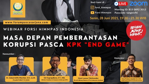 Foto : Pamflet Webinar Bertema “Masa Depan Pemberantasan Korupsi Pasca KPK “Endgame”. Sumber : instagram @forsi_himmpas