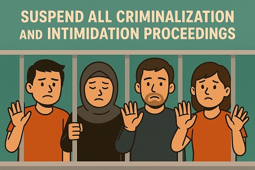 2. Meminta penghentian seluruh proses kriminalisasi dan intimidasi terhadap peneliti dan aktivis yang menjalankan hak konstitusionalnya untuk mencari dan menyebarkan informasi.