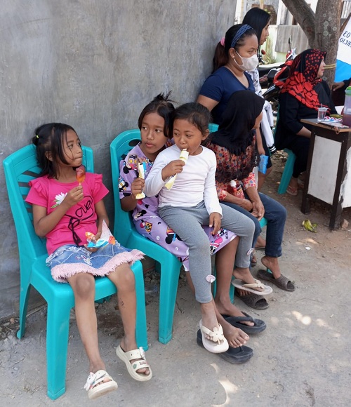 Yang cukup menarik perhatian dari acara perlombaan ini adalah, pada pagi dan siang hari semua panitia, perserta lomba dan warga wajib makan bersama dengan hidangan yang telah disediakan oleh swadaya oleh Ibu – Ibu PKK. Nampak juga terlihat, ” Lailatul Maghfiroh. SE , selaku Ketua Tim Penggerak PKK Rt : 12 membagikan puluhan Es Krim Gratis kepada puluhan anak – anak yang hadir, sehingga mereka terlihat tersenyum bahagia.
