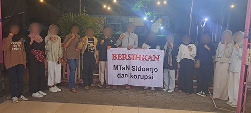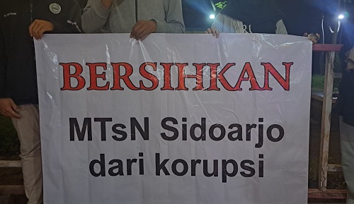 SIDOARJO – Didampingi beberapa wali murid MTsN 1 Sidoarjo dan dengan mengusung spanduk bertuliskan “BERSIHKAN MTSN SIDOARJO DARI KORUPSI” Gen Z Alumni Madrasah Sidoarjo menyatakan kesiapannya mengawal laporan dugaan pungutan liar di MTsN 1 Sidoarjo ke Presiden, Menteri Agama dan penegak hukum.