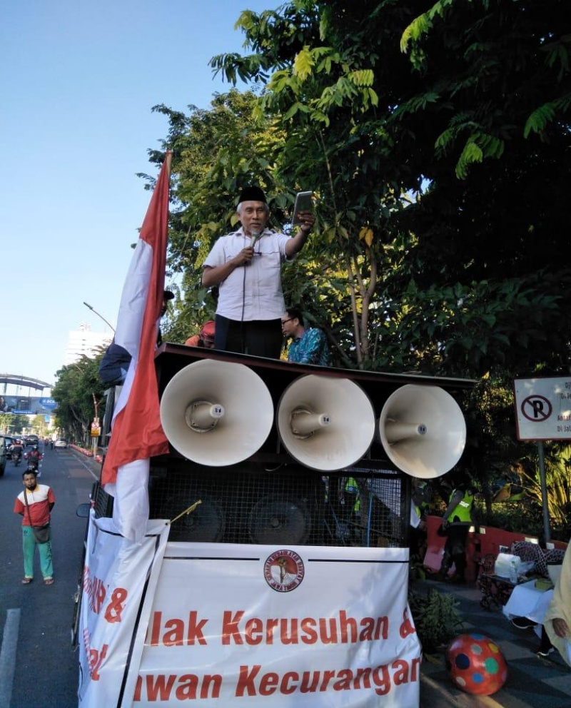 Aksi bertajuk “Aksi damai dan simpatik mendukung penegakan hukum untuk pemilu yang jujur adil dan konstitusional”, diikuti ratusan orang.