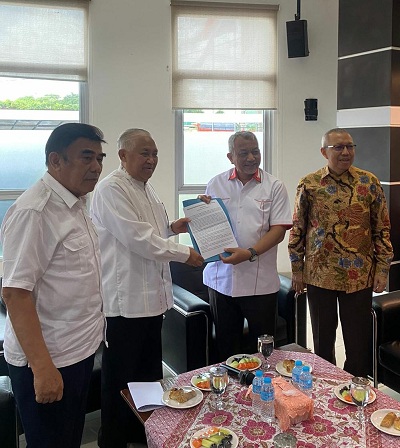 Penyerahan tuntutan GPKR oleh Prof. Din Syamsuddin kepada Presiden PKS Ahmad Syaiku di kantor pusat PKS, Rabu 6 Maret 2024