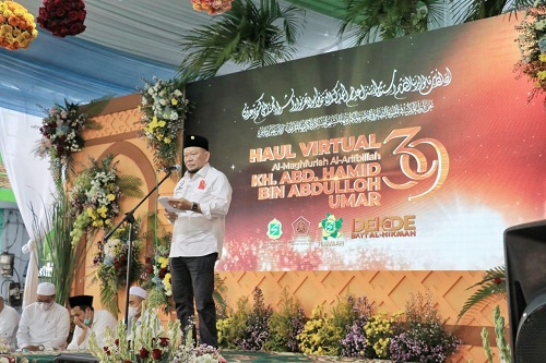 Acara Haul kali ini, selain LaNyalla, Wakil Presiden RI KH Ma’ruf Amin turut memberi sambutan secara virtual. Sementara mauidzah hasanah diberikan oleh KH Mustofa Bisri (virtual) dan KH Bahaudin Nursalim atau yang akrab disapa Gus Baha. Tampak sejumlah habaib, kiai dan masyayikh hadir di kursi barisan depan dan di dalam rumah utama. (*)