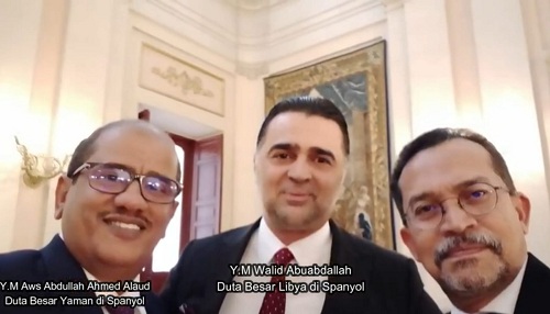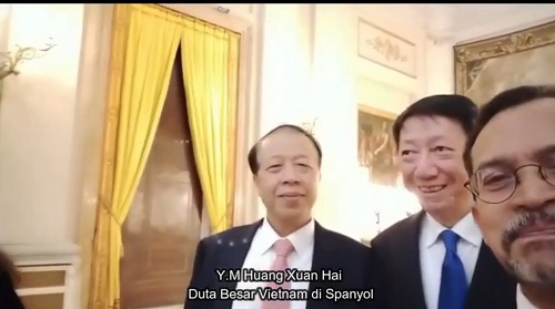 Sambil menunggu kedatangan Raja Felipe VI, Duta Besar Muhammad Najib memanfaatkan momen tersebut untuk berbagi informasi dan berdiskusi mengenai kepentingan negara Asia di Spanyol.