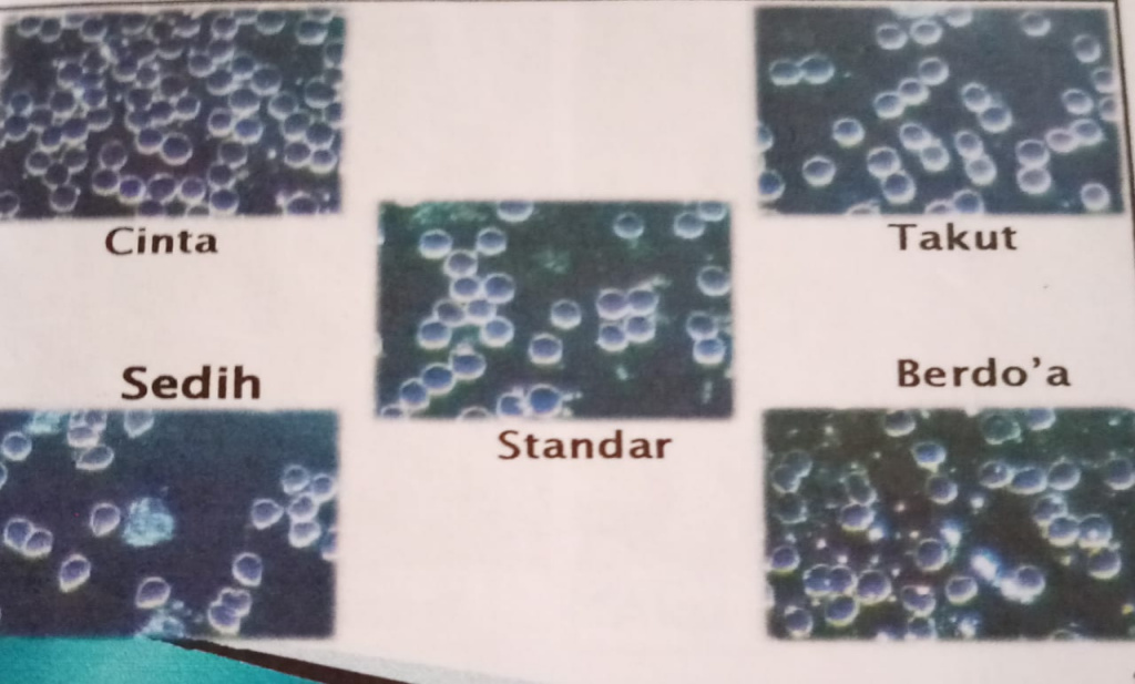 “Bentuk gerakan dan daya tahan sel darah berbeda beda sesuai dengan jenis pikiran dan emosi saat darah diambil sebagai sample”.