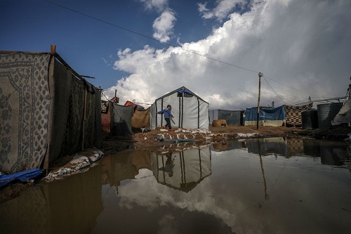 Badai hebat telah menyebabkan banjir yang meluas di kamp-kamp tempat ribuan orang mencari perlindungan. [Ramadan Abed/Reuters]