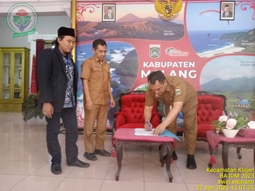 Hal ini ditandai dengan ditandatanganinya Berita Acara IDM 2023 Kabupaten Malang pada Selasa (27/06/2023) yang dilakukan oleh Kapala Dinas Pemberdayaan Masyarakat Desa (DPMD), Eko Margianto, Kepala Bappeda, Tomie Herawanto serta Koordinator TA PM Kabupaten Malang, Winartono di Pendopo Kabupaten Malang.