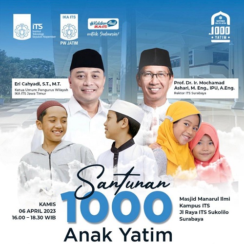 Di sela-sela kegiatan yang digelar di Masjid Manarul Ilmi, Kampus ITS Sukolilo, Surabaya, kamis sore, Ketua Panitia Santunan 1000 Anak Yatim mengatakan bahwa ini merupakan kegiatan perdana keperngurusan baru IKA ITS PW Jatim. “Kegiatan ini merupakan giat pertama yang digelar oleh IKA ITS Jatim di masa kepemimpinan Cak Eri Cahyadi” ujar Mukhlis Ndoyo. Ia mengatakan penyelenggaraan santunan anak yatim kali ini berbeda dari tahun-tahun sebelumnya, karena hampir semua pemenuhan kebutuhan acara melibatkan UMKM yang ada di wilayah Surabaya.