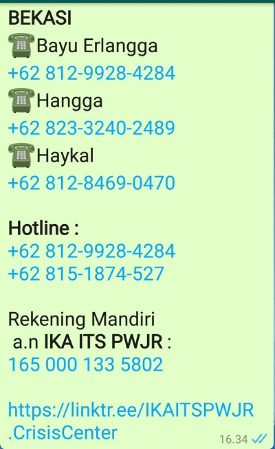 “Mahasiswa ITS yang berasal dari Jakarta, Bekasi (Patriot ITS) dan sekitarnya yang saat ini libur setelah UAS juga bisa membantu memaksimalkan kontribusi dalam upaya kepedulian ini,” ujar Fickar.