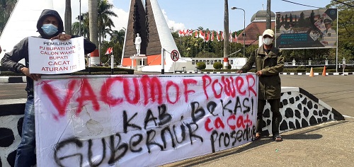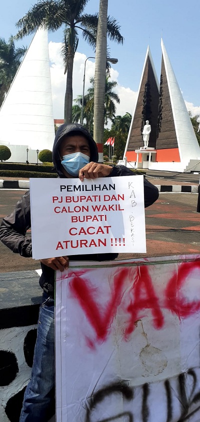 Pasca Bupati Bekasi Almarhum H. Eka Supriatmaja,S.H meninggal dunia terjadi kekosongan jabatan Bupati lalu berdasarkan kepmen No. 131. 32. 1374/ OTDA diangakatlah PJ Bupati Bekasi dari pejabat Provinsi Jawa Barat yang beberapa elemen masyarakat menafsirkan SK tersebut diduga non prosedural dikarenakan tidak sesuai Undang-Undang Nomor 23 tahun 2014.