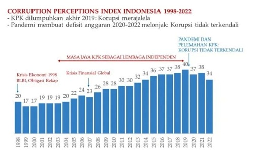 Memburuknya tingkat korupsi Indonesia ini sudah bisa diperkirakan sebelumnya, berawal dari kesepakatan pemerintah dan DPR untuk melemahkan KPK, memangkas independensi KPK, mematisurikan KPK, dengan revisi UU KPK pada akhir 2019.