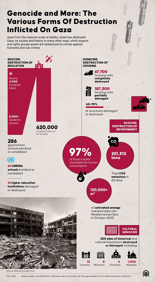 GAZA – Terlepas dari banyaknya korban jiwa, Israel telah menghancurkan Gaza, masyarakat dan sejarahnya dengan berbagai cara, yang menurut para ahli dan kelompok hak asasi manusia sama saja dengan kejahatan terhadap kemanusiaan dan kejahatan perang