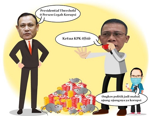 “Biaya politik tinggi yang berdampak pada perilaku korupsi mungkin itu masih relevan tapi kalau bicara presiden threshold itu Ketua KPK, maaf maaf offside menurut saya pernyataannya,” ujarnya.