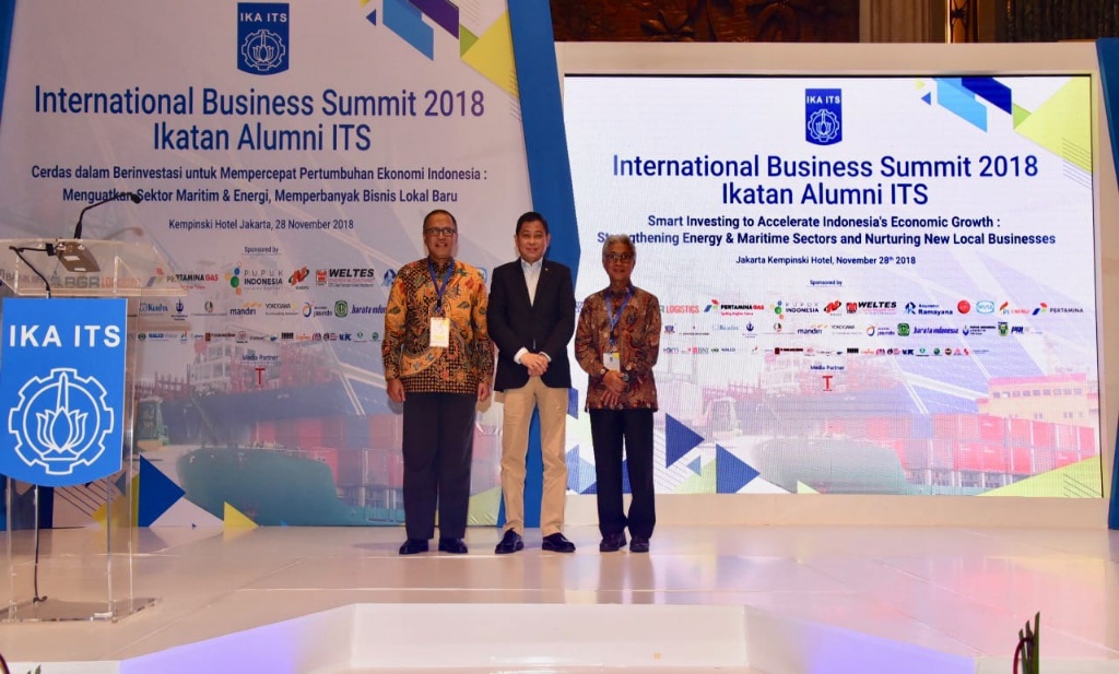 Acara bertema Smart Investing to Accelerate Indonesia’s Economic Growth: Strengthening Energy, Maritime Sector and Nurturing New Local Businesses, diselenggarakan oleh diselenggarakan oleh Ikatan Alumni Institut Teknologi Sepuluh Nopember (IKA ITS), hari Rabu, 28 Nopember 2018, di Ballroom Hotel Kempinsky-Jakarta.