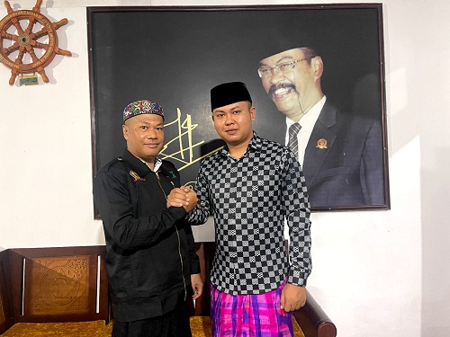 Kepala Desa Jangkong Kinandar Arif Santoso, SH (kanan) bersama sekretaris Majelis Silaturrahmi Selendang Hitam, Emha Bayjuri. (Foto:Istimewa/MaduraNews)