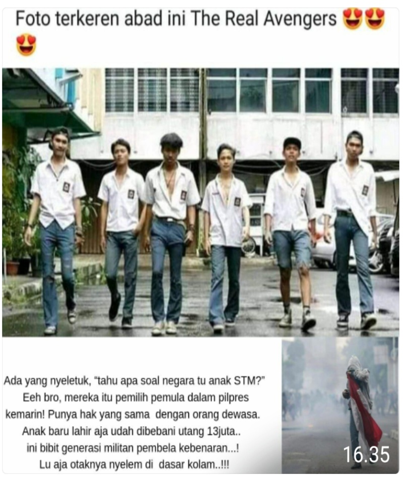 Para mahasiwa heran: “Adik-adik mau kemana?” Dengan enteng salah seorang mereka bilang: “Sekarang kakak mundur dulu, kami yang maju. Kakak yang orasi. Kami yang eksekusi.” Cerita selanjutnya, sudah banyak diketahui warganet. Saya ingin mengabadikan kehadiran mereka melalui beberapa simpulan: