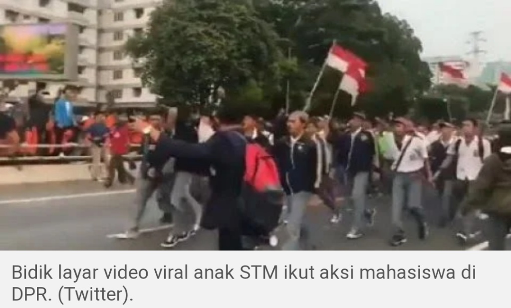 Kehadirannya tak terduga. Di luar sangkaan siapa pun. Aksi sedang deadlock karena penjagaan ketat dan keberingasan polisi, sudah banyak mahasiswa yang tumbang, tetiba mereka muncul dari satu arah, berseragam sekolah, hampir semuanya menggendong tas punggung sekolah.
