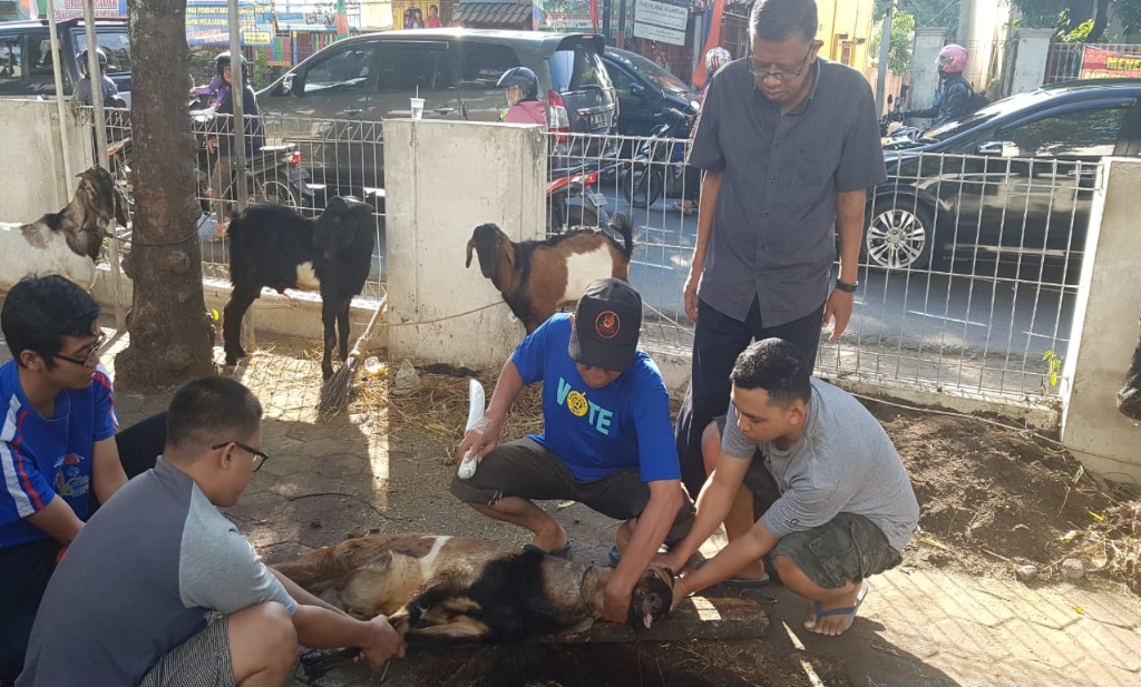 Penyembelihan dilakukan di halaman masjid Nurul Ilmi ysng juga sebagai sekretariat HMI Cab Semarang Jln Dewi Sartika 78 Kota Semarang.