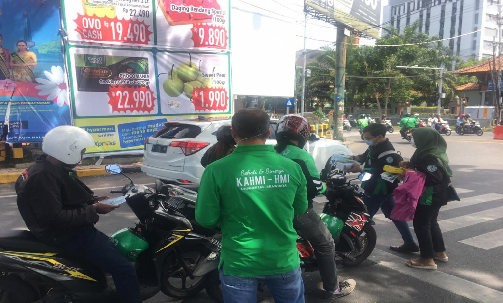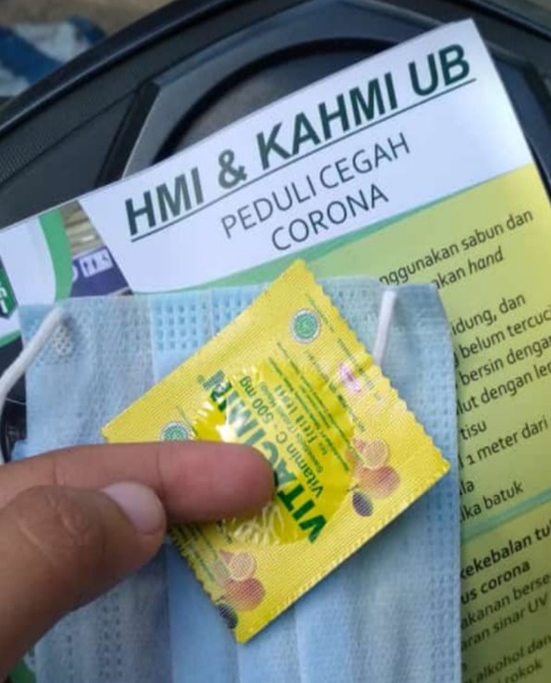 KAHMI dan HMI Universitas Brawijaya peduli Covid-19 : Bagi masker dan vitamin ke masyarakat