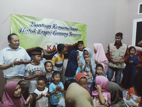 KAHMIPreneur bekerjasama dengan Indonesia Care dan MD KAHMI Lumajang memberikan bantuan sosial berupa logistik serta sejumlah relawan untuk aksi sosial mengurangi trauma warga, khususnya bagi anak-anak (17/12/2021).