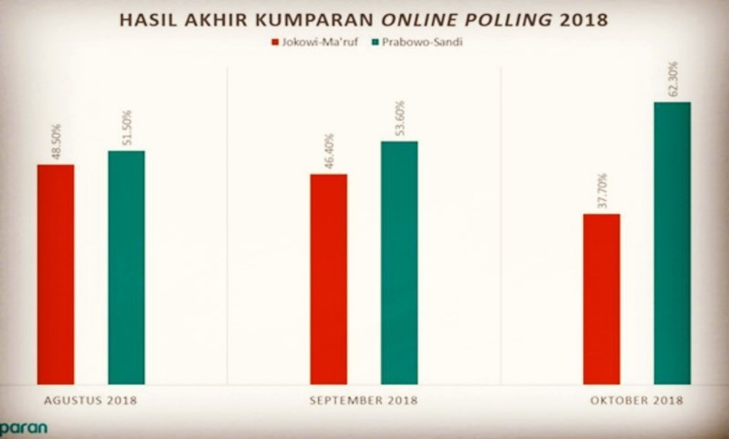 Pada dua polling sebelumnya yang digelar Kumparan, Prabowo juga unggul atas Jokowi. Begitu juga dengan polling yang diadakan oleh Najwa Shihab, Prabowo selalu unggul.