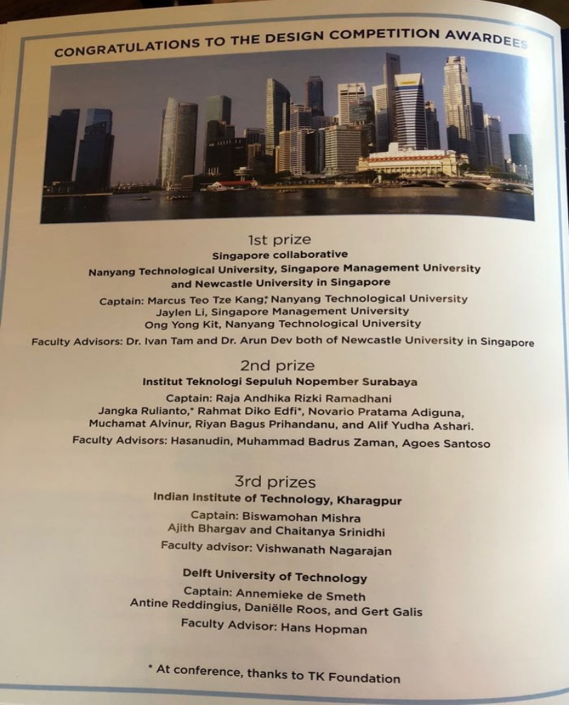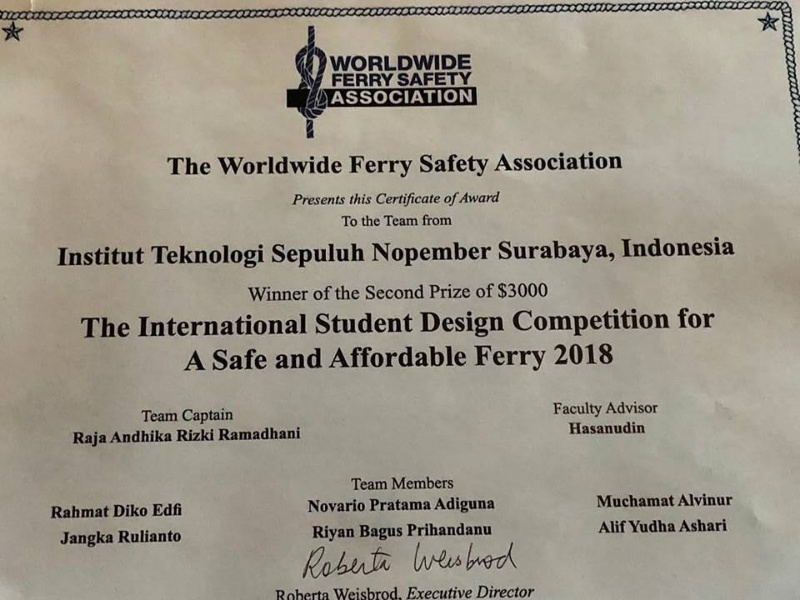 Ini merupakan torehan prestasi membanggakan terlebih ajang ini sekala internasional. Secara resmi penganugrahan diserahkan langsung di New York, AS, Kamis (22/3/2018) waktu setempat atau Jumat (23/3/2018) Waktu Indonesia bagian Barat. Keberhasilan tim ITS dalam ajang desain kapal ferry ini seakan menegaskan status Indonesia sebagai negara maritim terbesar di dunia.