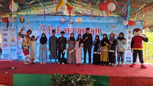 Faris sebagai salah satu anak yatim juga merasa senang dan bahagia. “Tiap tahun saya diundang kesini dihibur dan dikasih santunan”, katanya.