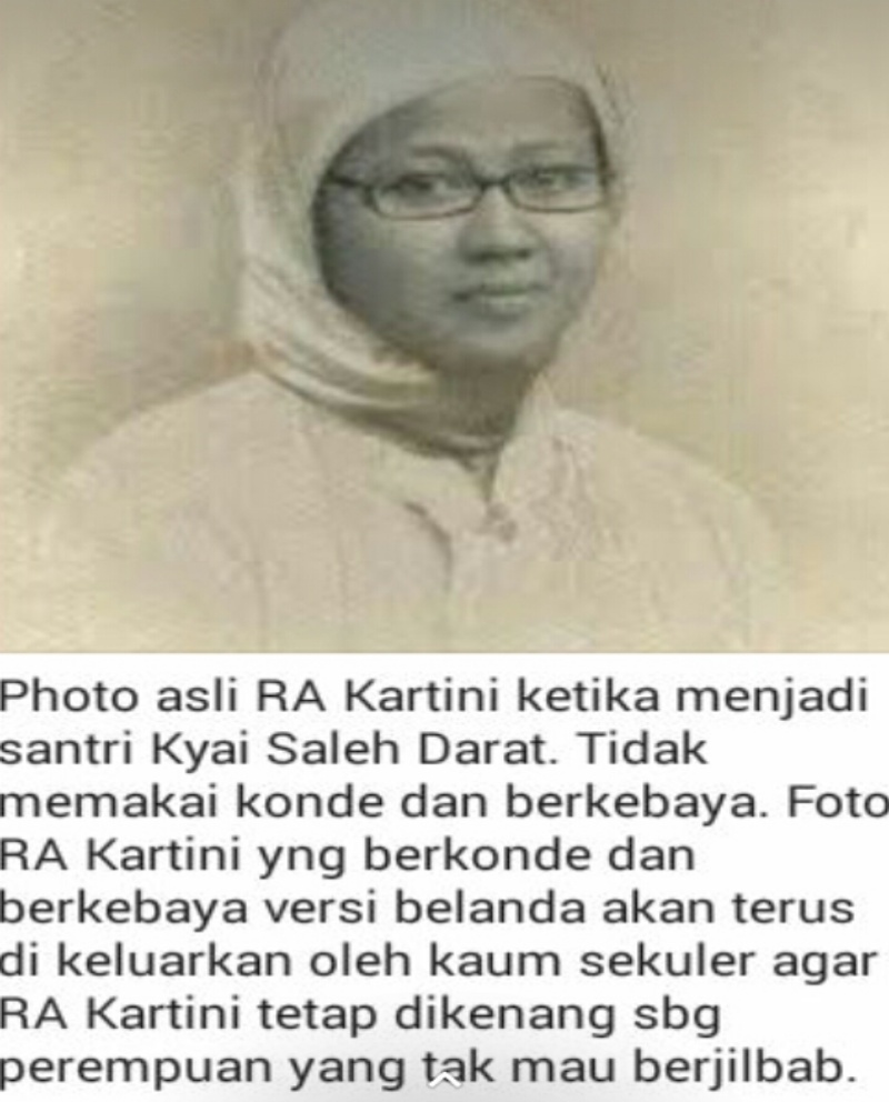 Foto Kartini berjilbab ini jarang dipublikasi karena Belanda sengaja menutupi ke-Islaman Kartini.