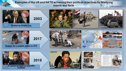 Kami ingin menarik perhatian Anda bahwa proyek-proyek semacam ini telah beberapa kali dilakukan oleh AS demi tujuan politis. Contoh provokasi informasi paling heboh adalah pidato Menlu AS Colin Powell pada 5 Februari, 2003. Ampul berisi sabun detergen yang ia bawa menjadi alasan untuk melakukan invasi ke Irak dan mengakibatkan tewasnya hampir 500 ribu orang.