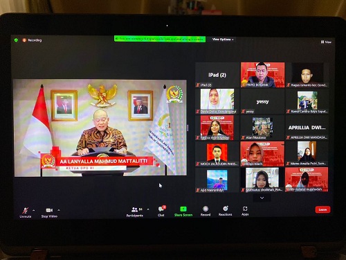 LaNyalla saat memberi sambutan secara virtual dalam Pemilihan Duta Pancasila Kabupaten Malang, Kamis (9/12/2021).