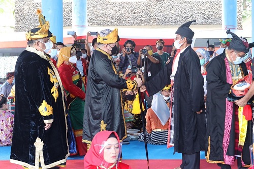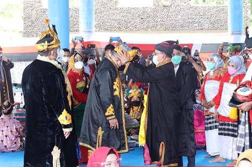 ZONASATUNEWS.COM, BAUBAU – Ketua DPD RI, AA LaNyalla Mahmud Mattalitti, dianugerahi gelar kehormatan adat dan budaya, Mia Ogena Yi Saragau, oleh Sultan Buton ke-40, Paduka Yang Mulia Dr. La Ode Muhammad Izzat Mana’arfa M.SI., Kamis (17/6/2021), di Baruga Keraton Buton, Kota Baubau.