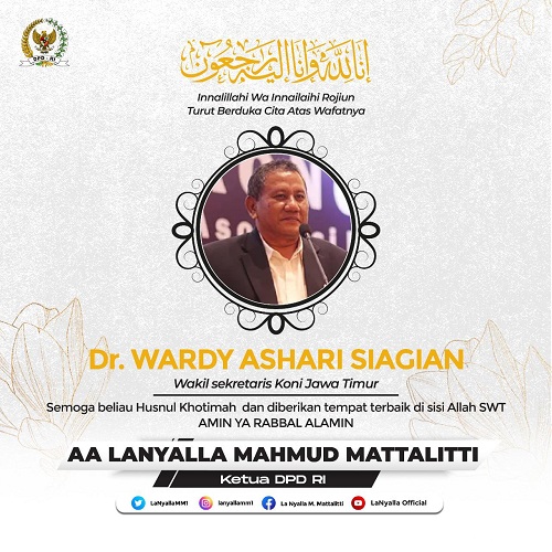 Innalillahi wainnailaihi raji’un. Semoga beliau di tempatkan disisi Allah yang Maha Kuasa, diterima semua amal ibadahnya dan diberi ketabahan untuk keluarga yang di tinggalkan. Turut berduka cita sedalam-dalamnya. AA LANYALLA MAHMUD MATTALITTI KETUA DPD RI