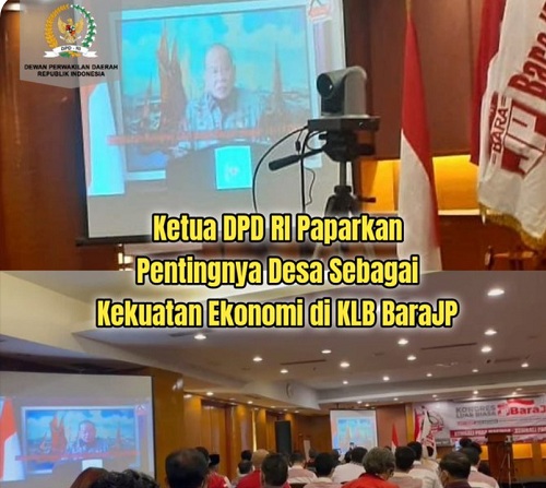 ZONASATUNEWS.COM, SURABAYA – Ketua DPD RI, AA LaNyalla Mahmud Mattalitti, menjelaskan pentingnya peran desa sebagai kekuatan ekonomi bangsa. Hal itu disampaikan LaNyalla di Kongres Luar Biasa (KLB) Barisan Relawan Jalan Perjuangan (BaraJP), Sabtu (16/10/2021).