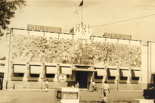 Bekas Gedung Hoso Kanri Kyoku yang seklanjutnya menjadi Gedung Radio Republik Indonesia. (Arsip KOMPAS/IPPHOS)
