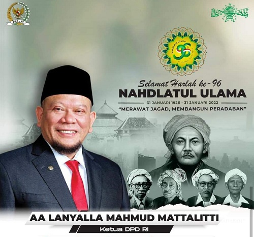 ZONASAUNEWS.COM, JAKARTA — Ketua DPD RI AA LaNyalla Mahmud Mattalitti menyampaikan Harlah NU yang ke 96. Hari ini (31/1/2022), 96 tahun yang lalu tepatnya 31 Januari 1926 ormas besar umat Islam itu dilahirkan.
