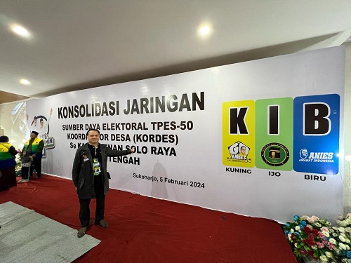 SOLO – KIB melakukan konsolidasi koordinator desa relawan KIB se-Solo Raya, Senin (5/2/24), tepat pukul 15.00 wib, bertempat di gedung serbaguna Cemani di Sukoharjo. Acara tersebut diikuti ratusan simpul dan eksponen KIB antara lain: Refly Harun, Saut Situmorang, Prof Anwar Sanusi, Yasin Kara, Sirojudin Wahab, Andi U, Andrianto Andri dll.