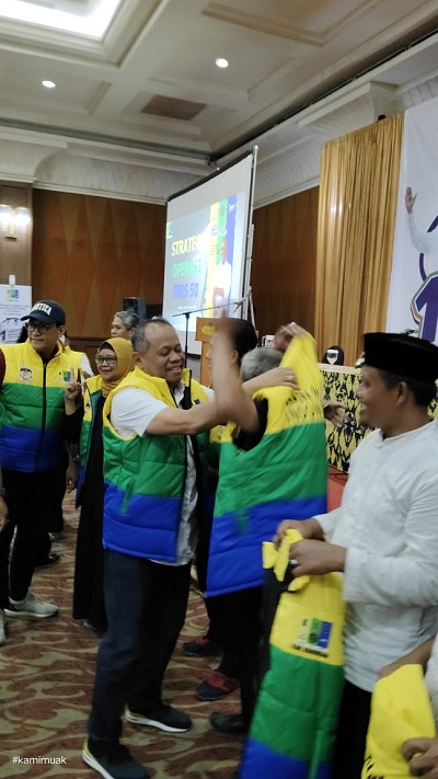 Setelah itu acara penyerahan simbolik Alat Peraga Kampanye (APK) berupa Rompi KIB kepada perwakilan Koord Kabupaten Bekasi, Garut, Tasikmalaya, Sumedang, Ciamis, Cimahi, Bandung, Bekasi, Cirebon,dll.