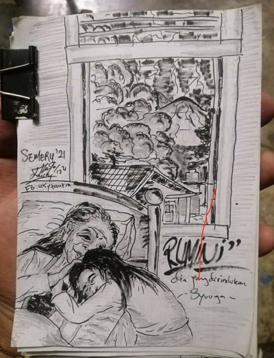 Mungkin kami harus belajar darimu tentang mencintai, terutama ibu. Tak rela kau tinggalkan ibumu saat erupsi Semeru menyerang desamu, Curah Kobokan, Candipuro, Lumajang, Sabtu 4 Desember 2021.